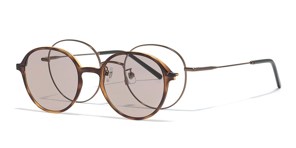 Easily switch between eyeglasses and sunglasses with a single pair.A refined design featuring oversized lenses paired with sleek metal temples.Includes
